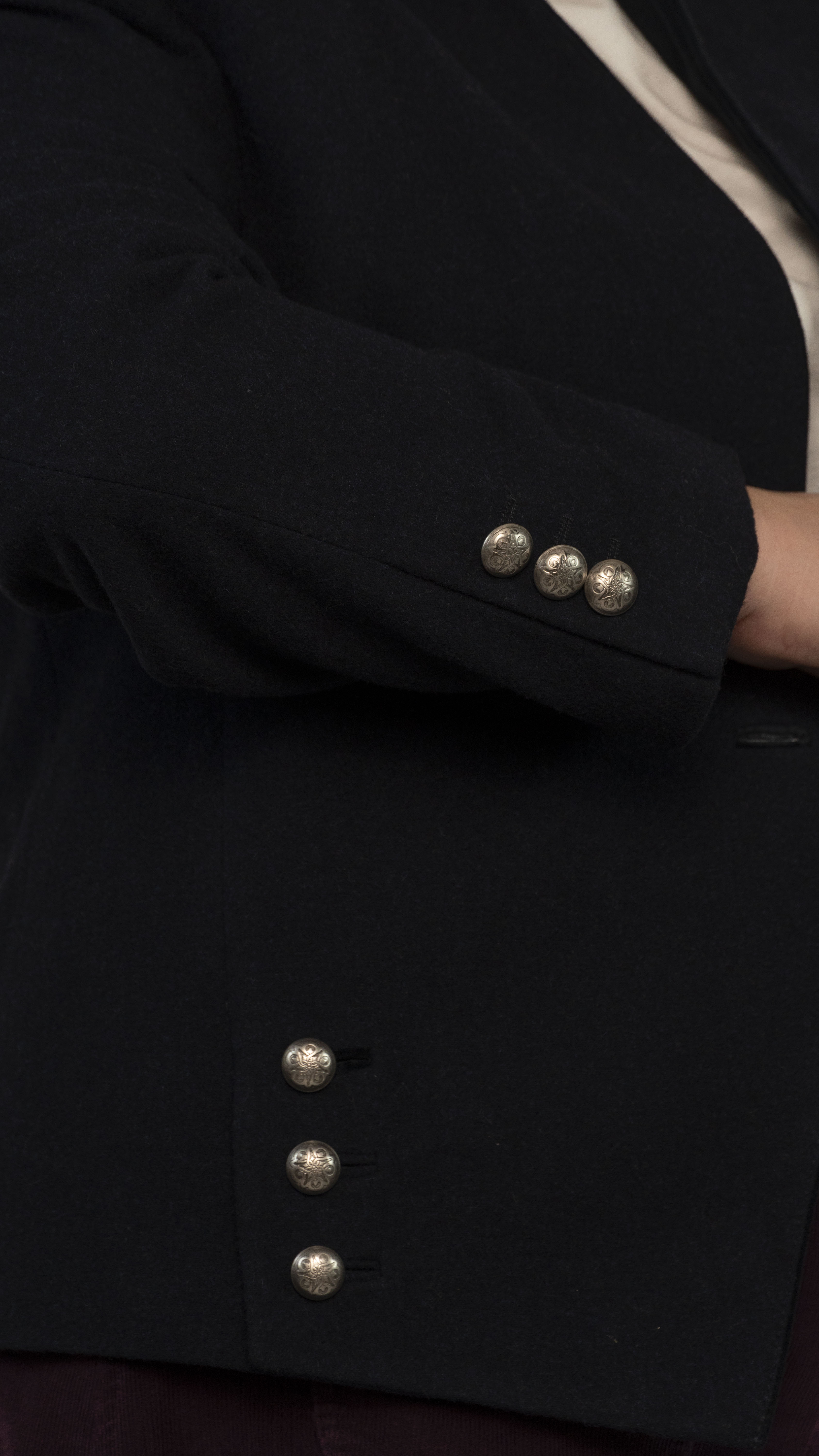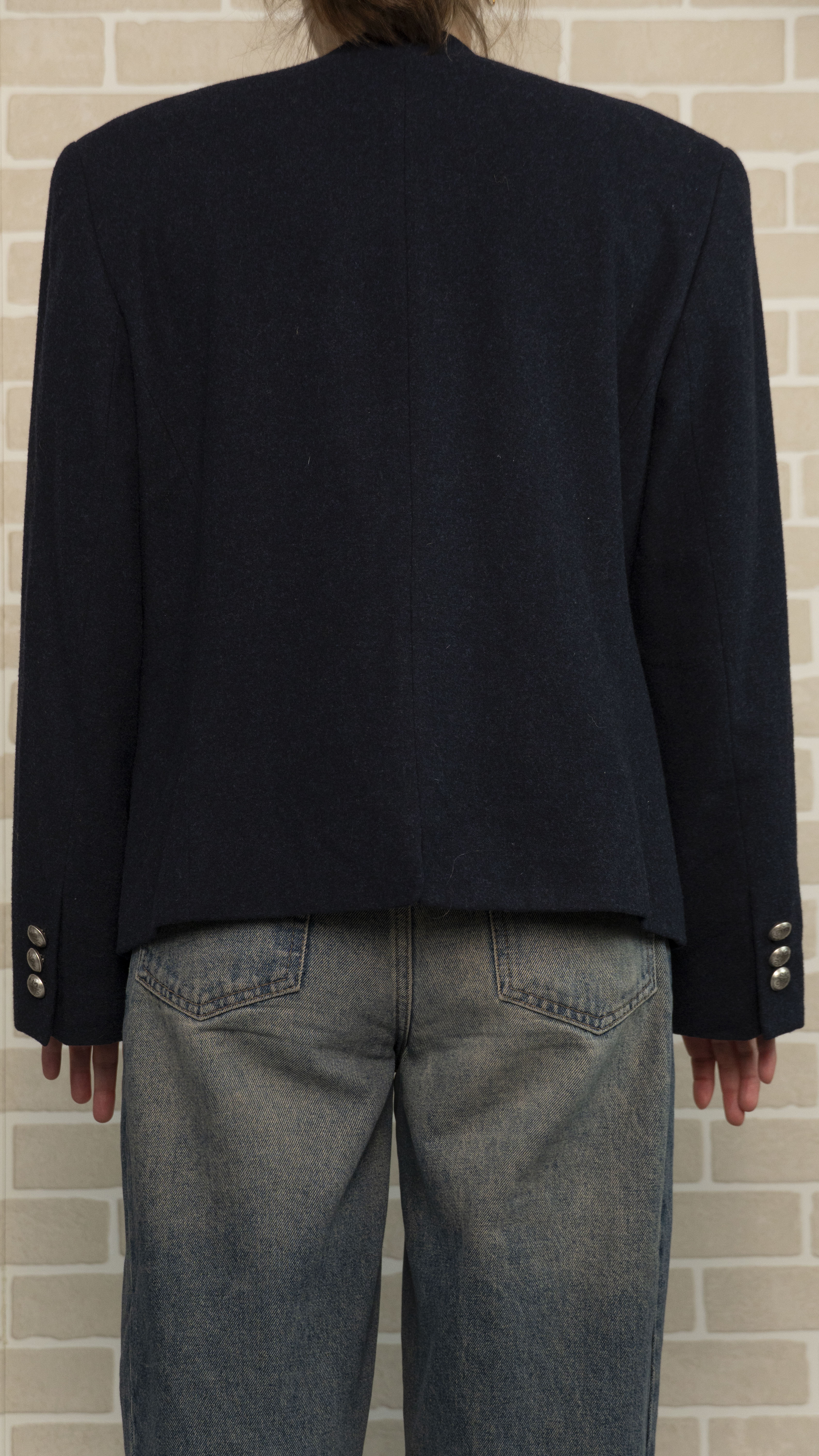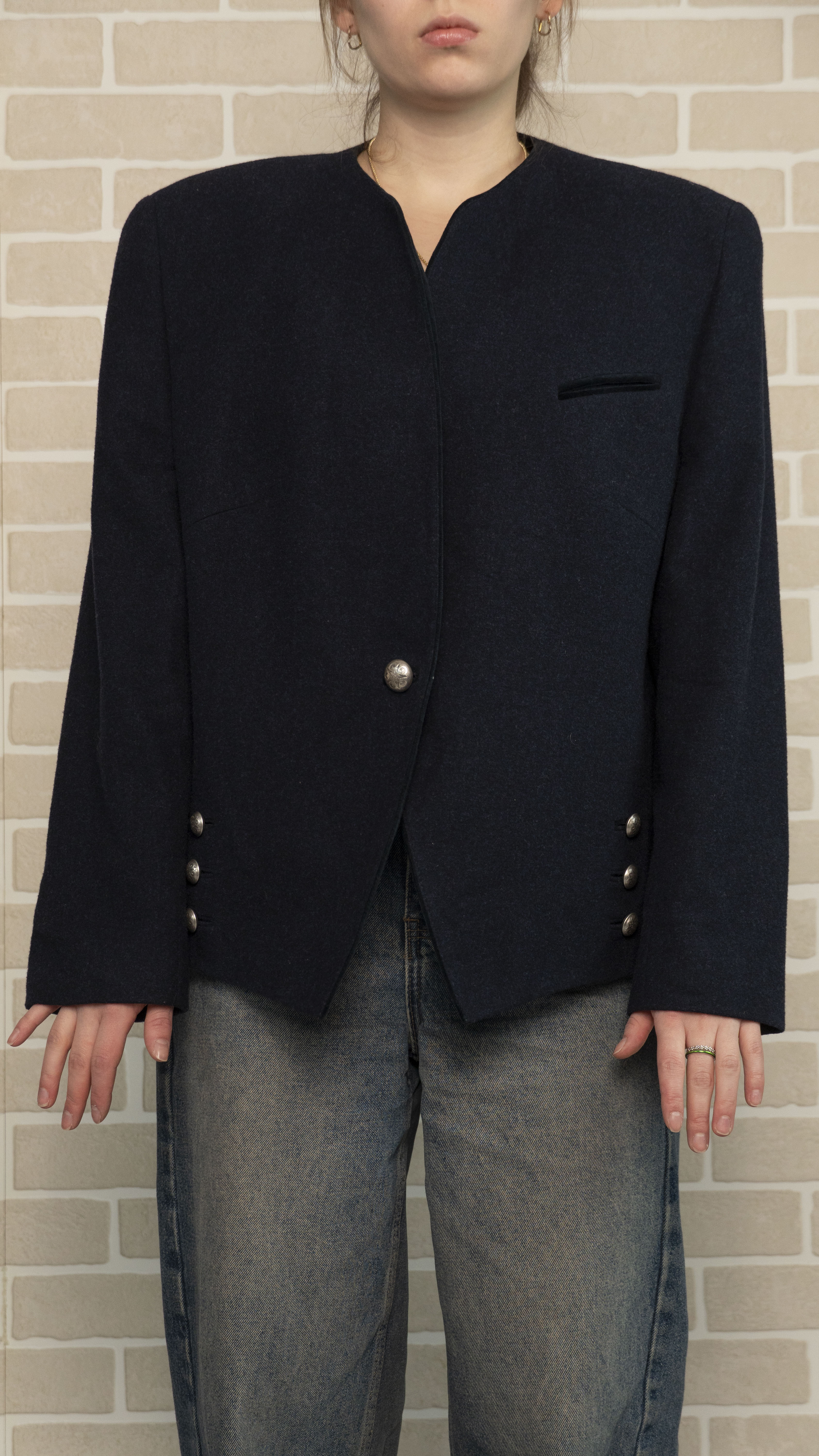 Бренд: Bastler Цвет: тёмно-синий Материал: 100% шерсть Страна бренда: Германия Наличие дефектов: состояние идеальное Особенности модели: есть бархатные вставки размер 44 (D) Замеры: ОГ - 116 см ОТ - 112 см Плечи – 46 см Длина рукава – 60 см Длина - 62-69 см