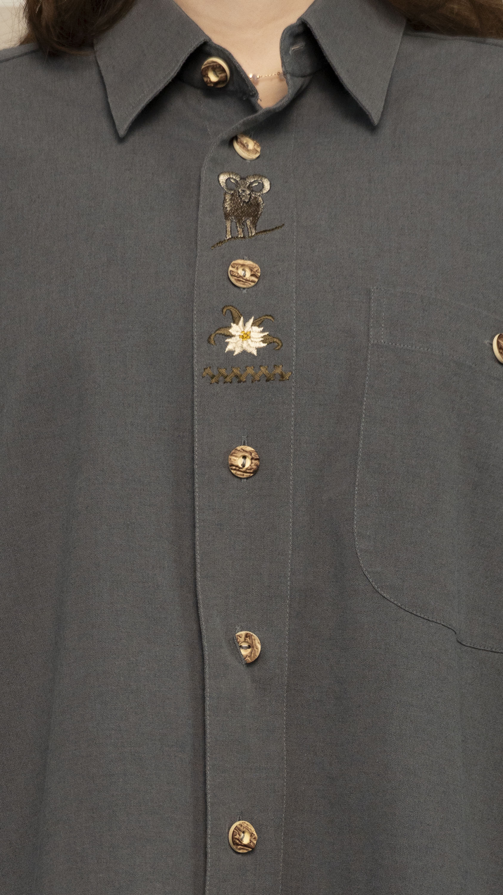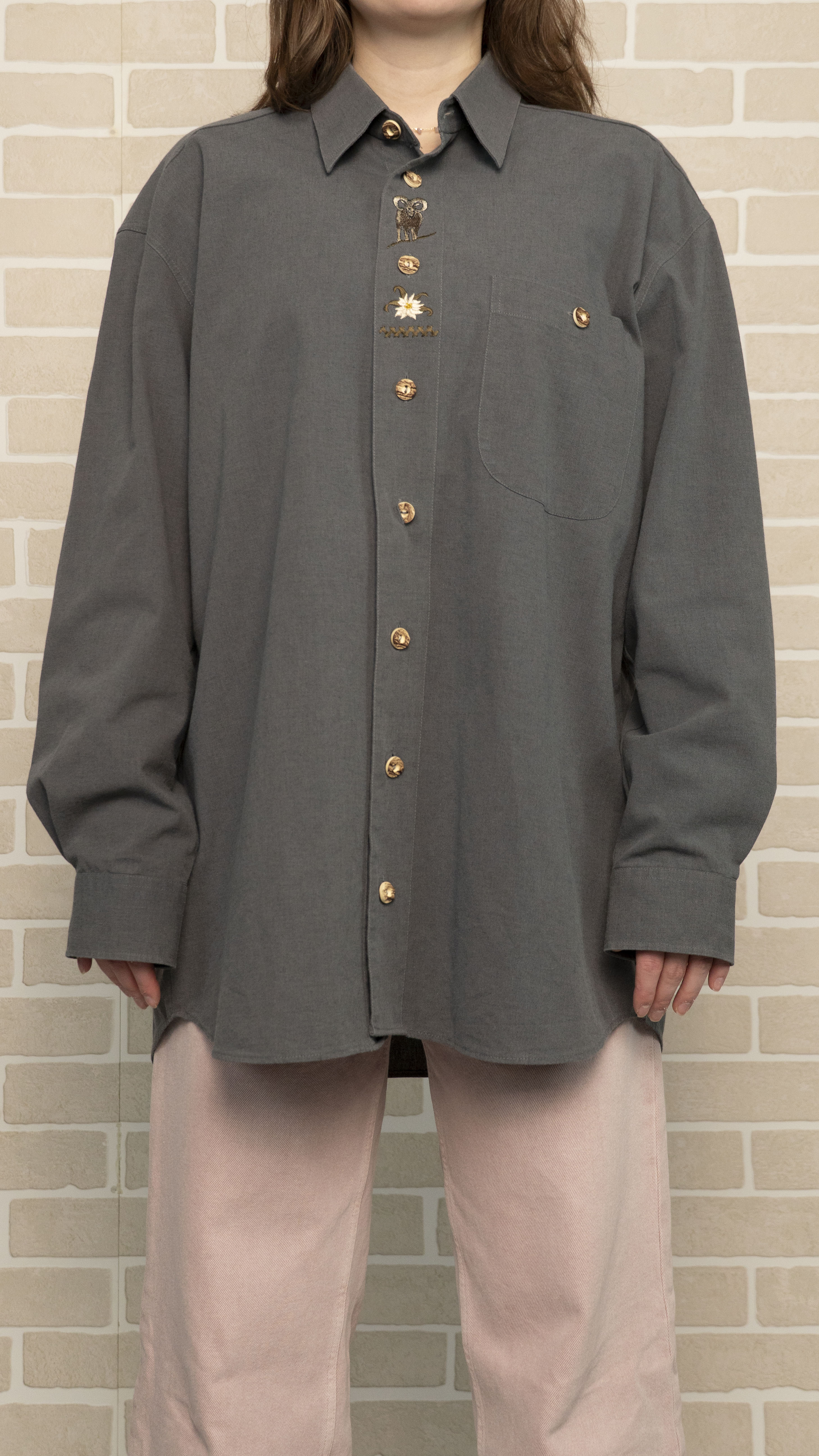 Бренд: BESS Trachten размер: XL D - 44 Цвет: тёмно-серый Материал: 100% - хлопок Страна бренда: Германия Наличие дефектов: нет Особенности модели: - Замеры: ОГ – 124 см ОТ – 124 см ОБ - 126 см Длина по плечам - 55 см Длина рукава - 59 см Длина изделия - 80 см Наличие карманов: 1